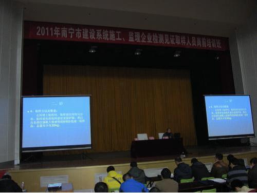 根據(jù)《關(guān)于舉辦2011年施工、監(jiān)理企業(yè)見證取樣人員崗前培訓(xùn)班的通知》,南寧市從2011年12月6日開始,對南寧市各施工單位、監(jiān)理單位、房地產(chǎn)開發(fā)單位以及市各有關(guān)建設(shè)單位在從事或?qū)氖陆ㄔO(shè)工程見證取樣工作的人員進(jìn)行建設(shè)系統(tǒng)施工、監(jiān)理企業(yè)檢測見證取樣人員崗前培訓(xùn)及考試。南寧品正參加了第4期培訓(xùn)及考試,參加培訓(xùn)總?cè)藬?shù)達(dá)到84人。