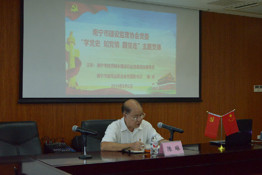 為扎實推進(jìn)“不忘初心 牢記使命”主題教育活動,同時紀(jì)念中國共產(chǎn)黨成立98周年,2019年9月6日上午,我公司黨員職工參加了南寧市建設(shè)監(jiān)理協(xié)會黨委組織開展的“學(xué)黨史 知黨情 跟黨走”主題黨課活動,此次黨課邀請到南寧市住房城鄉(xiāng)建設(shè)行業(yè)黨委政治指導(dǎo)員、兼南寧市建筑聯(lián)合會黨委副書記陳琳同志給全體黨員講述中國共產(chǎn)黨的奮斗歷程,回顧黨史,不忘初心。