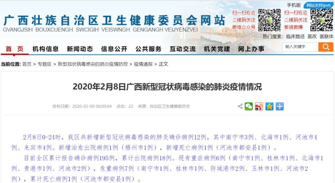 2020年2月9日上午,廣西壯族自治區(qū)衛(wèi)生健康委發(fā)布通報,2月8日0-24時,河池市新增4例新冠肺炎確診病例。報告死亡病例1例(都安縣病例)。