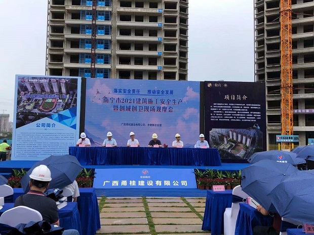 2021年6月4日,公司組織員工參加了由南寧市住建局、南寧市建管中心、南寧市建設(shè)質(zhì)安協(xié)會(huì)、廣西恒大企業(yè)集團(tuán)有限公司、廣西甬桂建設(shè)有限公司聯(lián)合承辦的南寧市建設(shè)工程2021建筑施工安全生產(chǎn)暨創(chuàng)城創(chuàng)衛(wèi)現(xiàn)場觀摩會(huì)。今年6月是全國第20個(gè)“安全生產(chǎn)月”,以“落實(shí)安全責(zé)任制,推動(dòng)安全發(fā)展”為主題。啟動(dòng)儀式由市建設(shè)質(zhì)安協(xié)會(huì)李壽坤會(huì)長主持,市住建局黃贊副局長、市建管中心錢強(qiáng)主任、廣西甬桂建設(shè)有限公司總經(jīng)理李朝群等出席會(huì)議,參加啟動(dòng)儀式的還有各縣、城區(qū)、開發(fā)區(qū)主管部門領(lǐng)導(dǎo),駐市施工、監(jiān)理企業(yè)及項(xiàng)目業(yè)主主要負(fù)責(zé)人。