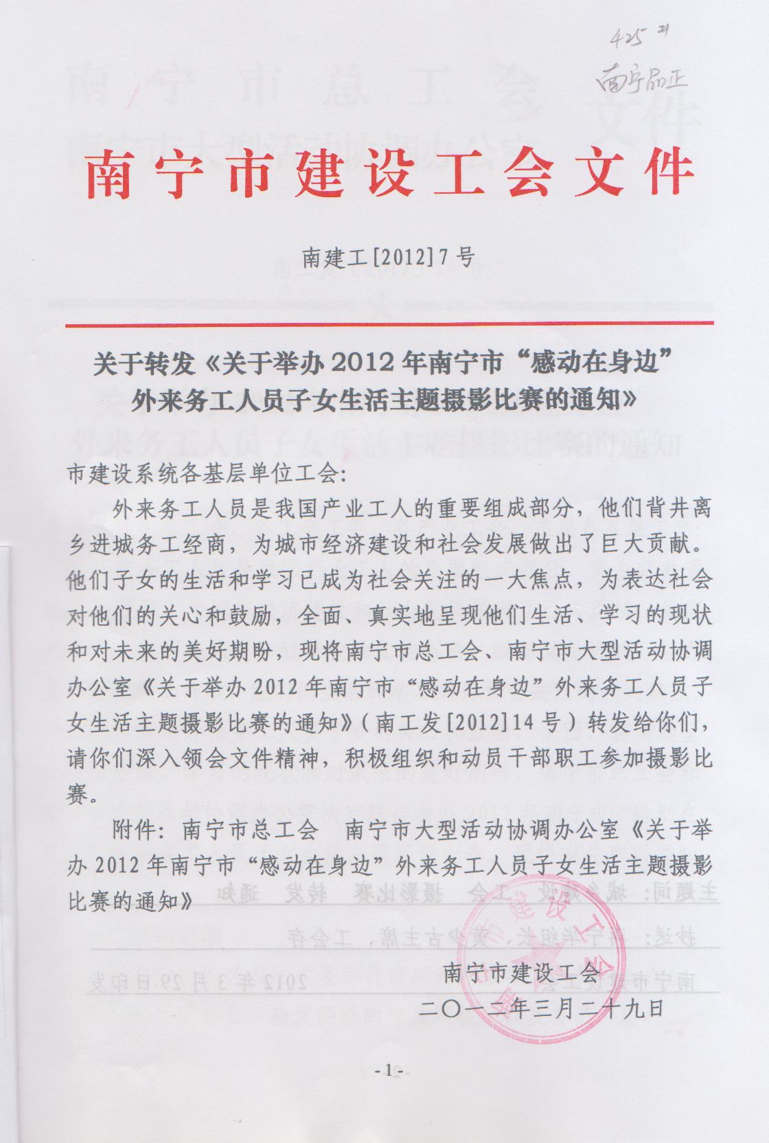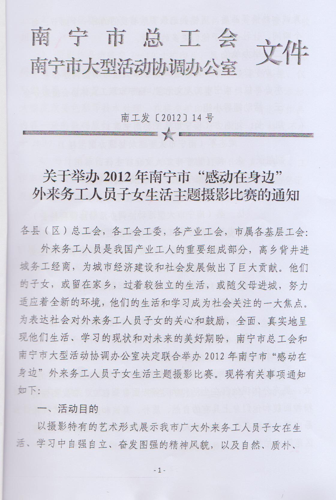 關(guān)于轉(zhuǎn)發(fā)《關(guān)于舉辦2012年南寧市“感動在身邊”外來務(wù)工人員子女生活主題攝影比賽的通知》