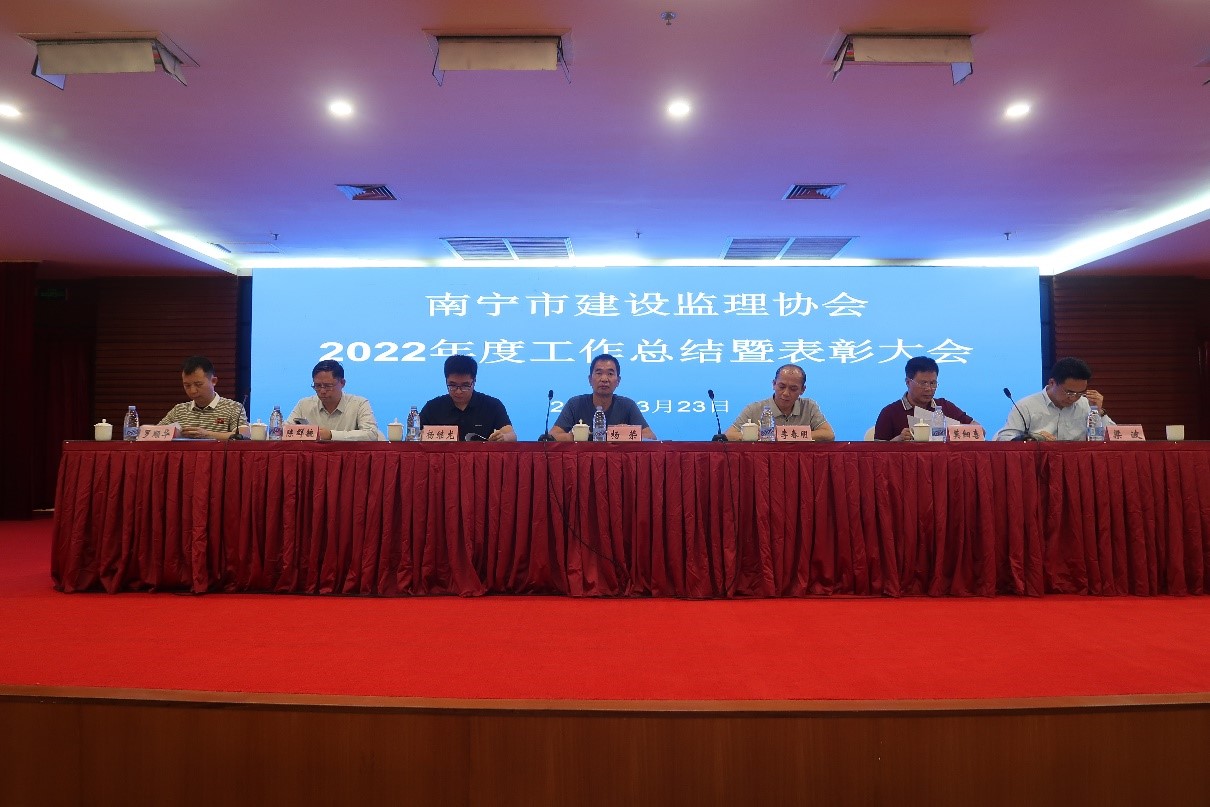 2023年3月23日,南寧市建設(shè)監(jiān)理協(xié)會在南寧市桃源飯店舉行2022年度南寧市建設(shè)監(jiān)理協(xié)會工作總結(jié)暨表彰大會,南寧市住房和城鄉(xiāng)局房屋建筑質(zhì)量安全監(jiān)管科副科長楊繼龍、南寧市民政局社會組織管理科科長、四級調(diào)研員李春明、廣西建設(shè)監(jiān)理協(xié)會會長陳群毓等領(lǐng)導到會指導并講話。南寧市建設(shè)監(jiān)理協(xié)會會員單位參加會議。