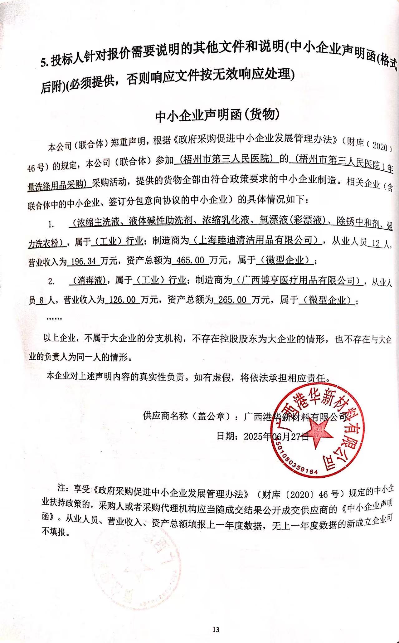 一、項(xiàng)目名稱:梧州市第三人民醫(yī)院1年量洗滌用品采購
