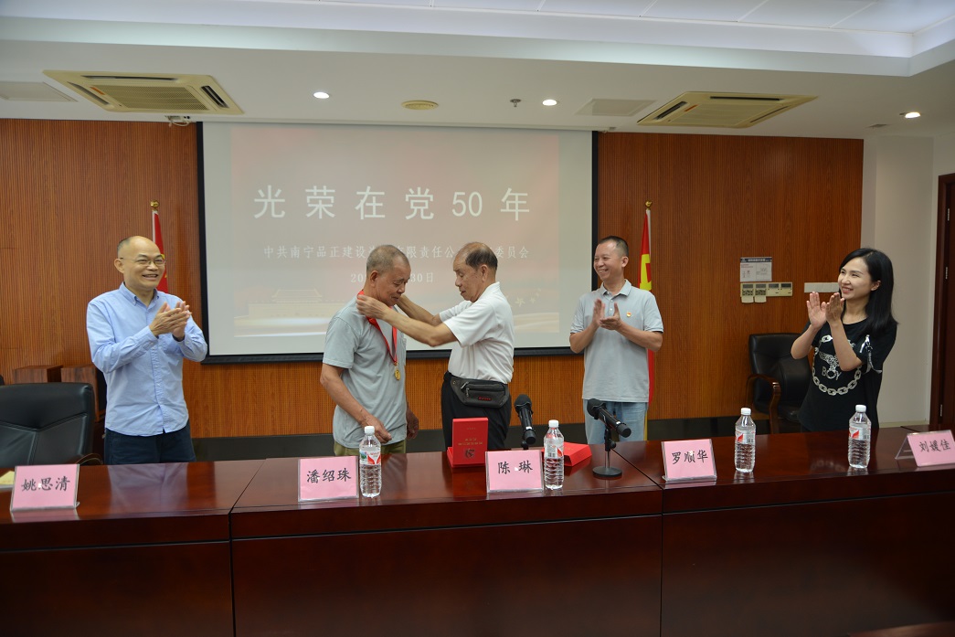 頒發(fā)儀式上,南寧市住建行業(yè)黨委陳琳副書記親手為潘紹珠同志戴上“光榮在黨50年”紀念章,潘紹珠同志撫摸著閃閃發(fā)亮的紀念章,激動之情溢于言表:“黨的104年華誕,能收到這樣一份特殊的禮物,十分激動。這枚沉甸甸的紀念章,是對我們老黨員、老同志的最高禮贊......?!?/span>