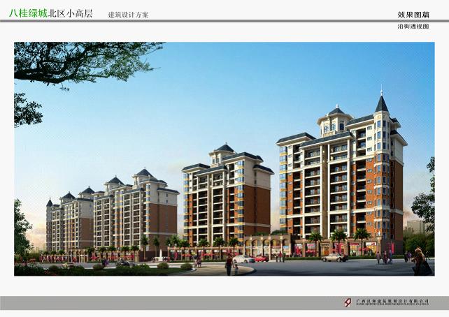 八桂綠城二期——龍湖御景A、B、C、D棟工程效果圖之沿街透視圖