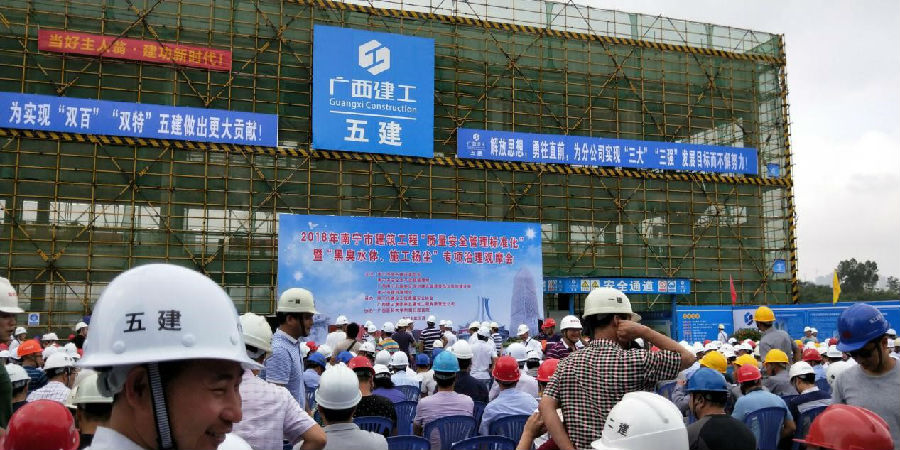 2018年5月11日,公司技術(shù)管理部門有關(guān)負(fù)責(zé)人和南寧市內(nèi)各項目總監(jiān),參加了由南寧市城鄉(xiāng)建設(shè)委員會、南寧市安全生產(chǎn)管理監(jiān)督局等單位主辦的2018年南寧市建筑工程“質(zhì)量安全管理標(biāo)準(zhǔn)化”暨“黑臭水體、施工揚塵”專項治理觀摩會。觀摩項目是廣西建工五建總承包施工的“廣西醫(yī)科大學(xué)東盟國際口腔醫(yī)學(xué)院項目北地塊主體工程”項目。觀摩會引千人觀摩,持續(xù)2小時。觀摩主要內(nèi)容如下: